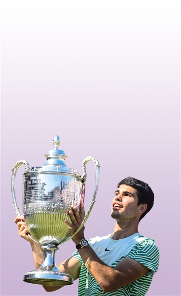 当天的决赛虽然被大风影响了一些观赏性,但阿尔卡拉斯展现出更胜一筹的调整能力。首盘两人各自保发战至4:4平,阿尔卡拉斯在第九局完成关键破发,之后拿下发球胜盘局。第二盘的进程和首盘类似,两人相持一阵过后,又是阿尔卡拉斯在第五局破发,以3:2领先,之后顺利收获个人职业生涯第一个草场赛事桂冠。