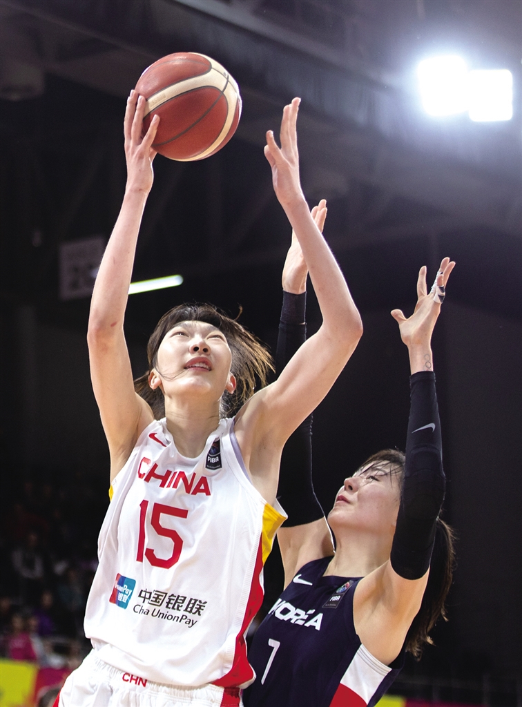 不过,此次参加亚洲杯的韩国队已不同于去年参加世界杯的那支韩国队,她们专门从WNBA召回了身高1.98米的核心主力朴智秀,极大加强了内线攻防实力。在这场中韩对抗中,朴智秀打满全场,拿下22分、8个篮板,给中国女篮制造了极大的麻烦。此外,韩国队也将其快速和拼抢凶狠积极的特点发挥得淋漓尽致。开场后,利用中国女篮的慢热,韩国队在3分钟内打了一个7:0,直接把中国女篮打蒙了。