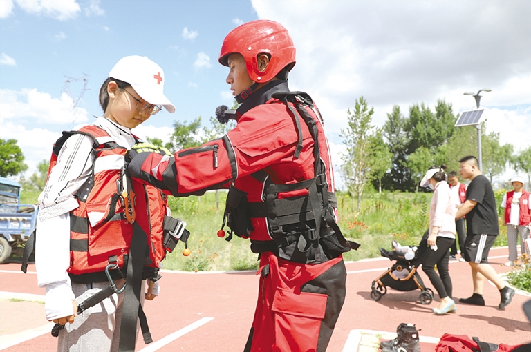 在呼和浩特市大黑河郊野公园直播现场,内蒙古自治区红十字会应急救护训练中心的赵燕燕老师,与呼和浩特市红十字会仁爱妈妈博爱公益学堂的孩子们互动热烈。赵燕燕为大家讲解了哪些人容易发生溺水事故、意外落水后如何自救等。呼和浩特市消防救援支队开展了防溺水实例警示教育,并从岸上救援、入水救援、舟艇救援三方面开展了不同类别的救援演练。直播通过草原全媒客户端、内蒙古日报视频号等平台同步播出,反响热烈,全网点击量超100万,点赞突破260万。