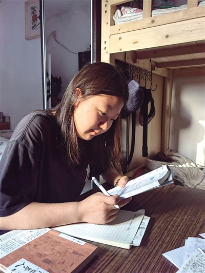 18岁女孩张佳文是赤峰市巴林左旗林东第一中学学生,今年以655分的高考成绩被北京大学心理学类专业录取。7月19日,张佳文在北京的出租房内埋头读书,她准备在开学前自学英语四、六级知识,还制定了电子绘画学习计划,以便学成后做兼职减轻家里负担。在学习之余,张佳文还承担了大部分家务,照顾罹患急性白血病的妈妈……为激励逆境学子勇敢追梦,本报联合阿里公益天天正能量授予张佳文1万元“正能量励志学子追梦奖学金”。