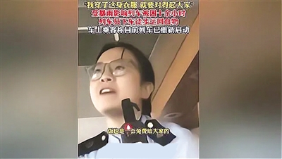 车外暴雨如注,辛苦了一整夜的列车值班员赵阳和同事们奔走于各个车厢安抚旅客情绪,排查登记旅客需求,及时为105名重点旅客解决各种困难。面对旅客万分焦急的脸庞,她扯着沙哑的嗓子,逐个解答旅客的疑问,一句又一句饱含深情的话语,打动了每位旅客的心。一位旅客将赵阳的工作视频发到抖音平台,“暴雨中列车员大声安抚乘客”话题一度登上热搜榜,网友纷纷点赞称:“她的话就是旅客心里的镇定剂!”