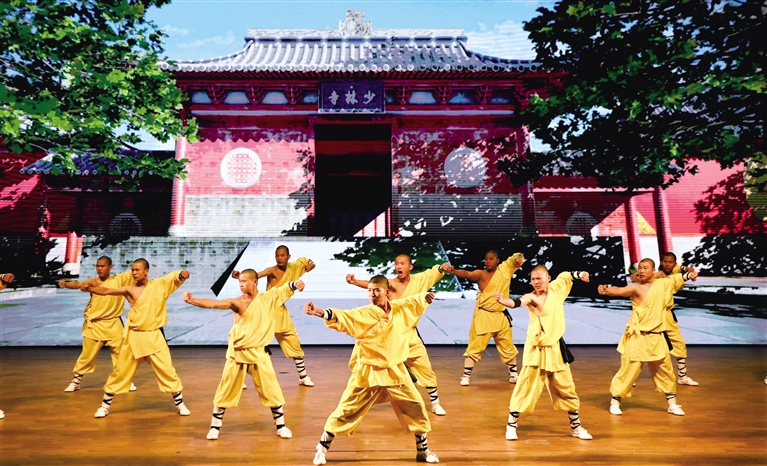 这是8月30日在蒙古国首都乌兰巴托拍摄的《武魂》少林武术专场演出。由中国内蒙古自治区人民政府新闻办、中国驻蒙古国大使馆、蒙古国文化部共同主办的“感知中国”·内蒙古文化周系列活动8月30日晚在蒙古国首都乌兰巴托拉开序幕。当日晚,《武魂》少林武术专场演出在乌兰巴托上演。(据新华社报道)
