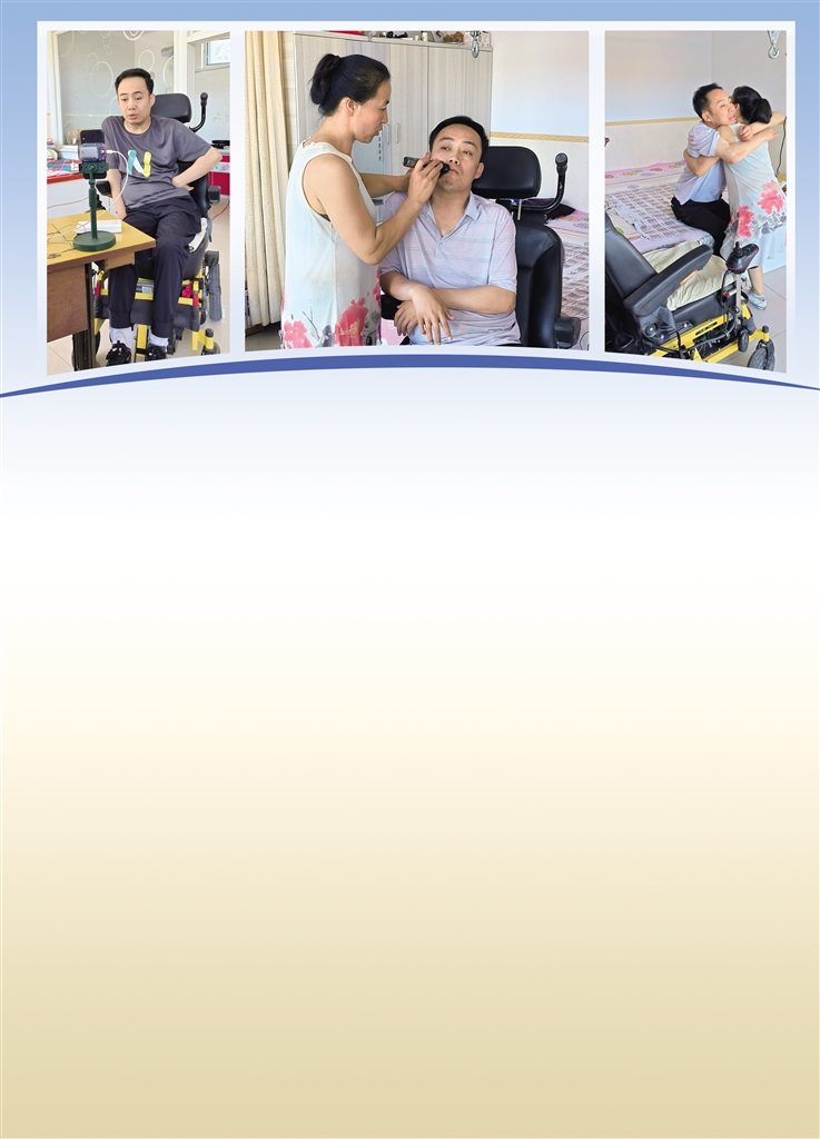 “截瘫10年,老婆抱了10我年。”韩春光感恩妻子。他和贾荣锋是高中同学,至今已经相识28年。从韩春光出事的第二天起,贾荣锋就辞去工作,细心照顾他,每天帮他做康复锻炼,还要负责所有家务。他不能站立、行走,每一次从床榻到轮椅,都是贾荣锋抱着他移动。他感谢妻子帮助他重新树立起生活的信心。