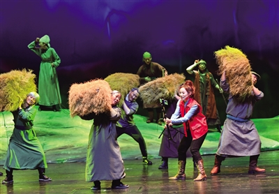 9月10日晚,国家艺术基金2023年度资助项目、歌舞剧《我的家乡》在内蒙古乌兰恰特剧院上演,图为返乡创业青年直播牧民收割牧草。该剧以返乡青年人才敖登和驻村青年干部赵存毅的奋斗历程为主线,讲述当代青年扎根祖国边疆,用青春力量赋能乡村振兴,建设美丽家园的感人故事,彰显当代青年的奋斗精神。
