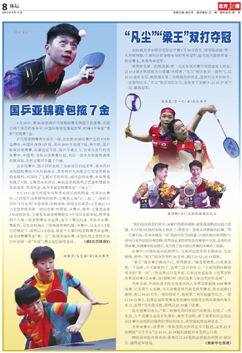 “梁王”组合赛后激动不已。梁伟铿说:“就是要敢想,以前老说想一下冠军,今天就做到了,证明了自己的实力。”王昶则期待解锁更多的“第一次”,“我觉得这只是开始,后面还有亚运会、(世界羽联世界巡回赛)总决赛、汤(姆斯)杯,我们会努力拿出更好的表现”。