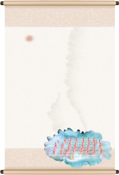 《烟雨染江南》,琴棋书画,诗酒茶香,天外仙乐,雨中江南,醉人!西子结伴,在一片硕大的荷叶上起舞芭蕾,江南采莲,莲叶田田,美景美人如画如诗铺展开来——