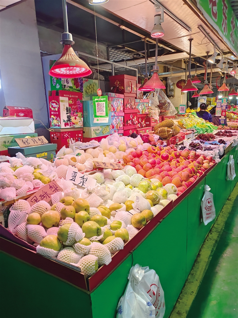 记者在走访时发现,还有不少商家仍在使用“生鲜灯”。在海东路809农贸批发市场,由于销售猪肉水果的摊位比较少,有的还在使用“生鲜灯”,但是摊主们表示已经获悉将要实施的《办法》,正在等待市场管理方统一更换。在这家批发市场,记者还发现几家售卖水果的摊位还在使用“生鲜灯”。一位摊主说,她还不知道国家出台了相关政策。当记者告诉她12月份开始禁用“生鲜灯”,这位摊主表示,取消好,使用这种灯除了让水果颜色好看点,没啥好处,还费电。