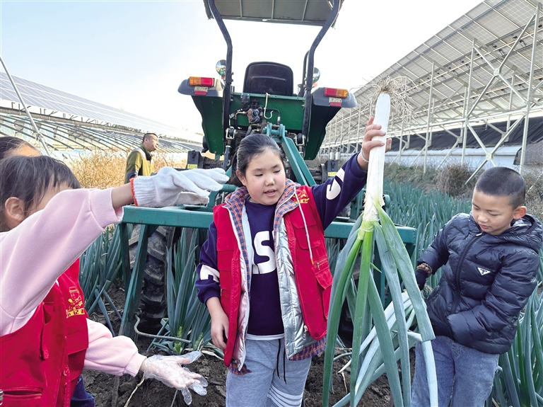 动作快的小记者和萌娃,一会儿工夫就拔起一堆大葱,很多家长也是第一次体验收大葱,过了一把瘾。小记者张芸菁说:“终于知道大葱是这样长出来的,农民伯伯真不容易。”“今天的活动给我留下了深刻印象,不仅有趣,我们还上了一堂生动的自然课,在劳动中学到很多。”小记者陈耀泽说。家长郑亚静对记者说:“从城市到乡村,从餐桌到地头,这样的经历会丰富孩子们的生活经验。相信在活动中,他们会成为善于发现生活之美,乐于记录生活之趣的人。”