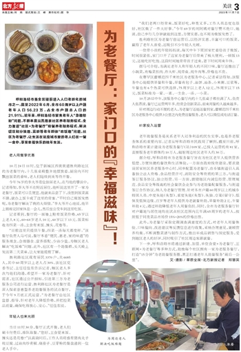 一位带小孩的年轻妈妈说,每天中午下班回家忙着给孩子做饭,时间很紧张,家门口开了这家为老餐厅后带来了极大便利,一顿饭13元,还能吃好吃饱。这段时间她常带孩子过来,省下时间用来午休。