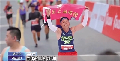 2013年,王荣明第一次跑完了42.195公里的上海马拉松,他也更加爱上这项运动。“有人会为你伸出手来,给你加油,这个感觉真的挺好。”