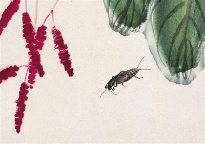 田野中的花花草草和一些小昆虫们,以活泼生动的姿态和精巧可爱的形体,为历代画家们所着迷喜爱,也成为他们创作中的题材。蝼蛄最早入画的,应该是现存于台北故宫博物院的《宋崔悫画杞实鹌鹑图册》,是北宋画家崔悫创作的一幅有关蝼蛄的古画。画中蝼蛄笔墨厚实,形态逼真,犹如跳到画中的一只活生生蝼蛄再现。近现代画家中,白石老人对蝼蛄也是喜爱有加,著名的《红蓼蝼蛄》《蝼蛄与藕》中,把这不起眼的蝼蛄再现于高雅的笔墨之上,画中的蝼蛄通体灵透,且意趣横生。不仅看得出白石老人对生活的观察之细致,对蝼蛄的喜爱更是跃然纸上。