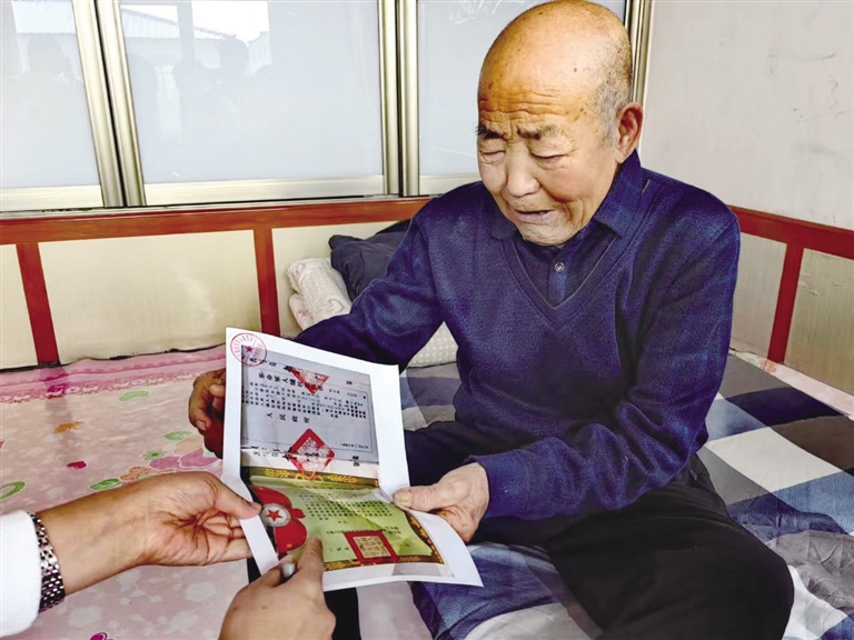 曹玉玺老人今年87岁,他的儿子曹国华讲述了自己了解的情况:“父亲兄弟姐妹4个,曹玉文是我大伯,1947年当的兵,去了七八年没音信。父亲多方打听才得知,大伯已经牺牲了,但埋葬在哪里不知道。后来政府给补了烈士牺牲证明,可过去这么多年找不到了。”