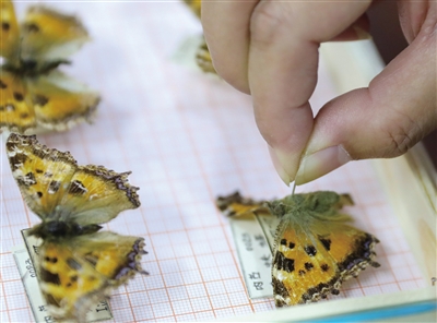 11月14日,内蒙古林业科学研究院的工作人员正在修复昆虫标本。据了解,此次昆虫标本修复和整理工作,是对几代林业人收集的2000多件昆虫标本进行的挽救性修复,修复后的标本将为内蒙古后续科学研究昆虫资源提供重要的资料。这批标本整理完毕后,计划用于林业科普展览,让更多人了解内蒙古地区的昆虫资源。