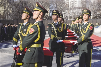 全体人员向志愿军烈士三鞠躬,27名部队官兵鸣枪12响,向英烈致以崇高敬意。《思念曲》再次低回奏响,礼兵们抬起志愿军烈士棺椁,绕广场半周,缓缓走向安葬地宫。自2014年以来,我国连续10年以隆重礼仪迎接总计938位志愿军烈士遗骸归国安葬,让他们回到祖国的怀抱。