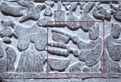 一个现代吃货从来不乏选择,殊不知2000多年前的汉代人也一样嘴馋,不仅用五宫格吃火锅,撸起串来也是不亦乐乎。比如临沂五里堡汉画像石——《庖厨图》(如图4),这组汉画像石生动记录了当时人们烧烤的场景。西汉马王堆也发现了许多排列整齐的烤串。