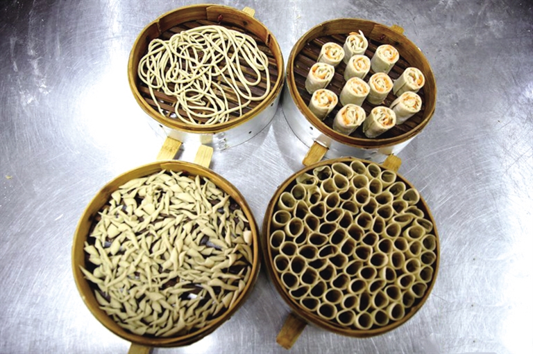 奶奶是白旗人,最爱吃莜面,从小我就跟着奶奶搓莜面鱼鱼、捏莜面窝窝。奶奶在盆中放入莜面,浇开水和面,反复搅拌、揉搓,最后成为一块光滑的面团。她取一小块面团,在石板上按成长长的扁片,用手从一边搓起,卷在食指上,一个莜面窝窝就做好了。奶奶在我面前反复演示,我就学着她的样子一搓一卷,做成差不多大小的形状。这时爷爷在一旁用机器压莜面鱼鱼。一家人有说有笑,其乐融融,在柴米油盐中体味着平凡的幸福。