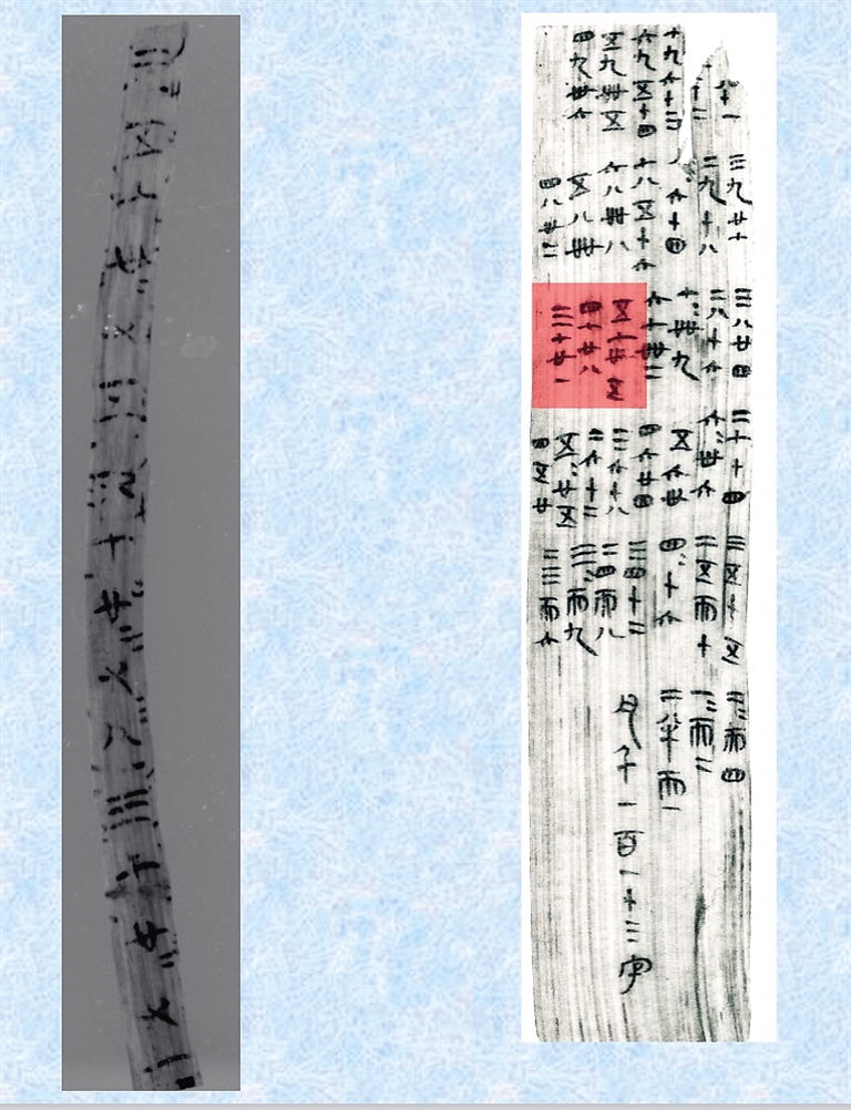 荆州文物保护中心主任方北松曾于2002年至2007年在湖南长沙参与里耶秦简的出土整理与文物修复工作。他告诉记者:“2002年的一天,脱色处理过的几支秦简上显现出了完整的乘法口诀表,这成为当时重要的考古发现。现在,我又亲眼见到了更早的乘法口诀实物,令人惊奇!”