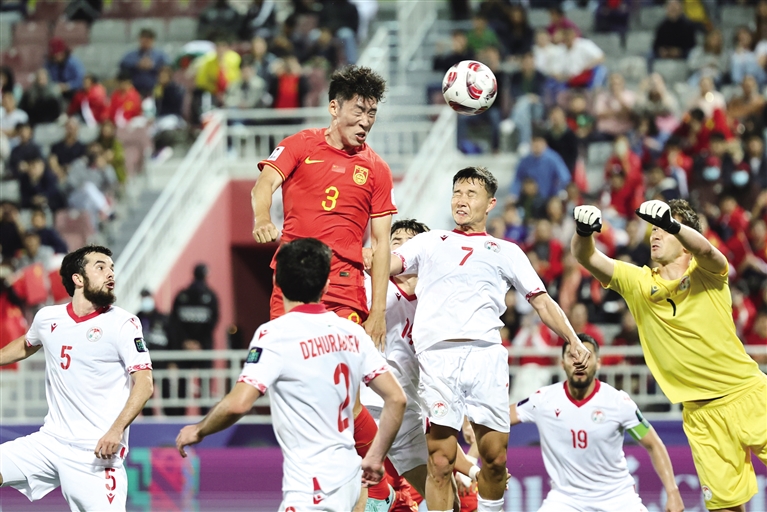 中国队本应该有机会1:0拿下比赛,度过平庸的大部分时间后,第80分钟年轻的申花中卫朱辰杰在角球进攻中,用一记漂亮的狮子甩头攻破了塔吉克斯坦队的球门。只不过,沙特主裁奥伊什经视频助理裁判提醒后,认为中国队有球员越