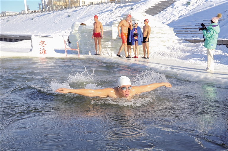 这些冬泳爱好者都来自呼伦贝尔市海拉尔冬泳协会,该协会会长云峰告诉记者,协会由8位冬泳爱好者于1996年倡导成立,目前有会员80多人,其中年纪最大的92岁,最小的27岁。