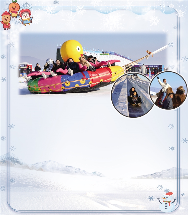 游玩项目:雪地滑梯、亲子乐园、雪上龙舟、雪地越野车等。