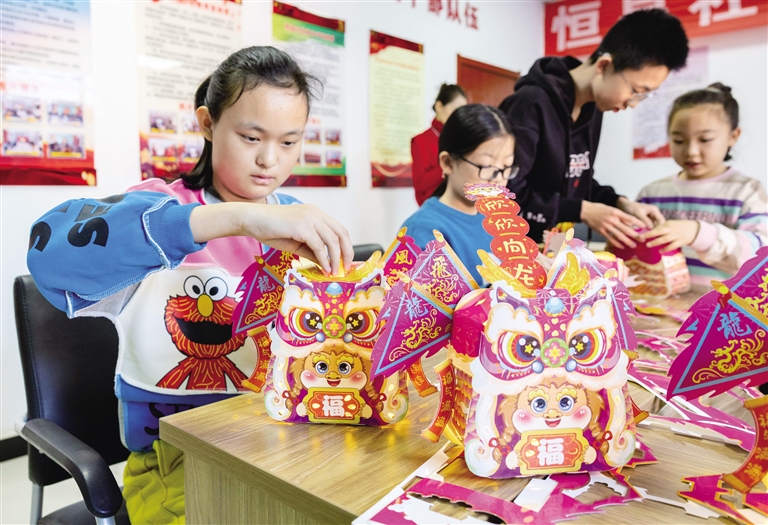 1月23日,小朋友们正在拼装龙年花灯。随着春节临近,呼和浩特市玉泉区民政局组织辖区儿童开展“感受传统文化迎新春”主题活动,孩子们通过亲身体验写“福”字、编中国结、拼装花灯等项目,感受中华传统文化魅力,喜迎新春佳节。摄影/草原全媒·北方新报首席记者 牛天甲