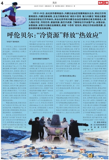 连日来,记者在呼伦贝尔市感受到“冷资源”带来的“热效应”。呼伦贝尔市年降雪期长达7个月,积雪厚度30厘米以上,为冰雪产业发展带来无限可能。“冰雪+休闲观光”“冰雪+康养”“冰雪+运动”“冰雪+研学”等多种游购娱模式也快速兴起。连续多年举办的冰雪那达慕、冬季英雄会、冷极马拉松,让“呼伦贝尔大雪原”品牌在国内冰雪旅游市场具有较强的影响力和辨识度。