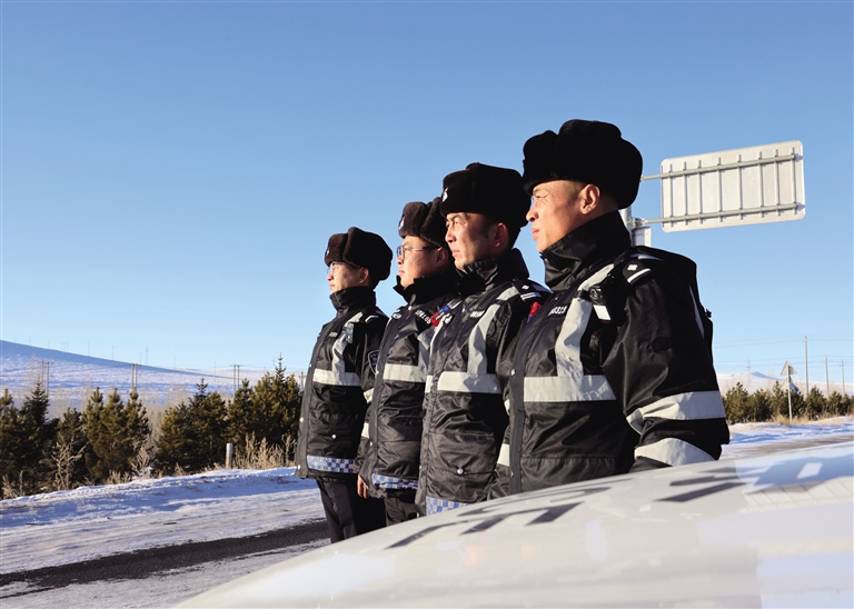 1月24日13时,阿巴嘎旗公安局交管大队副大队长王晓伟和两个徒弟——辅警布图木吉、王魏魏准备上路执勤。这是一天中最暖和的时候,气温零下24摄氏度。棉帽子、围巾、手套和厚大衣必不可少,可这也难以抵挡长时间户外执勤的寒冷。