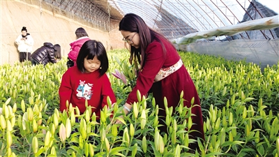 据介绍,“小黑人”“法兰西”“红兔子”“真爱”“白衣王子”等10个郁金香品种在大棚内进行示范性栽培,橙、粉、白、紫的花朵含苞欲放,美不胜收,一些市民正在采摘,精心挑选6元一朵的新鲜花卉。