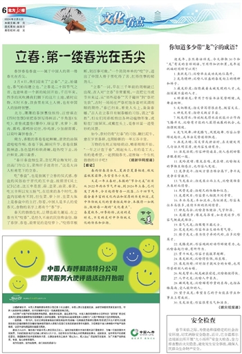 又是一年立春时,本报的“节令之美”栏目从2022年雨水节气开始,到2024年立春,已刊发了两年,今日起将暂告一段落。二十四节气蕴含着丰富的文化内涵和深厚的历史积淀,是中华传统文化的重要组成部分。本报将一如既往,做好每一期的“文化看点”。春夏秋冬,四季轮转,流逝的是时光,不变的是对中华传统文化的传承和弘扬。