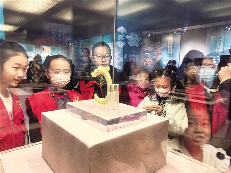 “遥远的东方有一条龙,它的名字就叫中国……”龙,中华民族的象征。那么,龙的形象最早出现在什么时候,又经历了怎样的演变?小记者们首先走进《龙行中华——甲辰龙年生肖文物大联展》,这里展出了数百幅祥龙题材的文物艺术品。大家一边参观,一边倾听讲解员详细介绍中国历史上龙的来源及形象演变:中国目前发现最早的龙形象出现在新石器时代,此后龙的形象得到不断丰富与完善,马头、鹿角、蛇身、鹰爪的中国龙形象逐渐得以固定,并区分出三爪、四爪、五爪龙,在不同历史时期,龙爪数量与象征意义都有所变化,被赋予更为丰富的文化内涵。