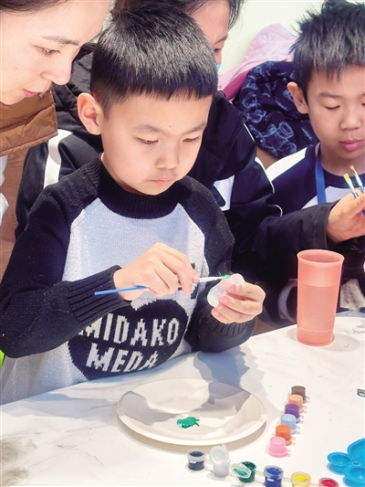 “龙的故事太有趣了,我学到好多新知识。”小记者路至诚属龙,今年12岁,从小便对龙的故事感兴趣,最令他高兴的是,大家亲手制作了“红山玉龙”树脂挂坠,把属于自己的龙年饰品带回家。在青少年探索营地,讲解员教大家用自由树脂捏出龙身和龙头,然后涂色、固色、安装挂绳……一件件精美的玉龙挂坠出炉了。