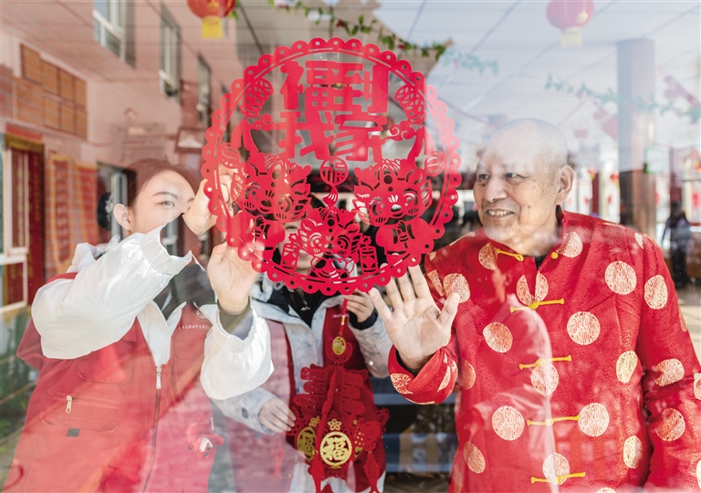 2月6日,呼和浩特市玉泉区民政局“福至养老院 情暖夕阳红”迎新春主题活动在玉泉区夕阳红老年康乐园举行。志愿者、院方工作人员与老人们齐聚一堂,一起包饺子、挂灯笼、写福字、剪窗花,在欢声笑语中共迎佳节。摄影/草原全媒·北方新报首席记者 牛天甲