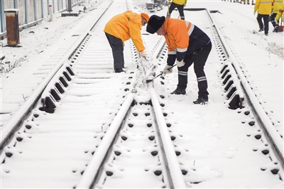 据中国国家铁路集团方面介绍,武汉、郑州、上海、广州等铁路局集团公司动态调整旅客列车运行方案,采取降速、迂回、停运等预防性措施,主动规避安全风险;组织人员和机具上线扫雪除冰,最大限度减少积雪结冰对运输秩序的影响;在主要铁路干线和枢纽储备一定数量的热备内燃机车和救援人员,做好应急准备。