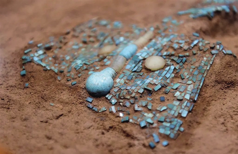 这件龙形“超级国宝”,由2300多片绿松石拼接而成。尽管2002年才出土于河南偃师二里头遗址,不过已被学术界普遍认定是华夏龙图腾最直接、最正统的根源。
