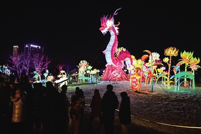 春节期间,呼和浩特市小草公园大型灯会吸引众多市民、游客前往观赏,造型各异的灯组,绚烂的灯光,让人们沉浸在喜庆祥和的氛围中。 摄影/草原全媒·北方新报首席记者 牛天甲