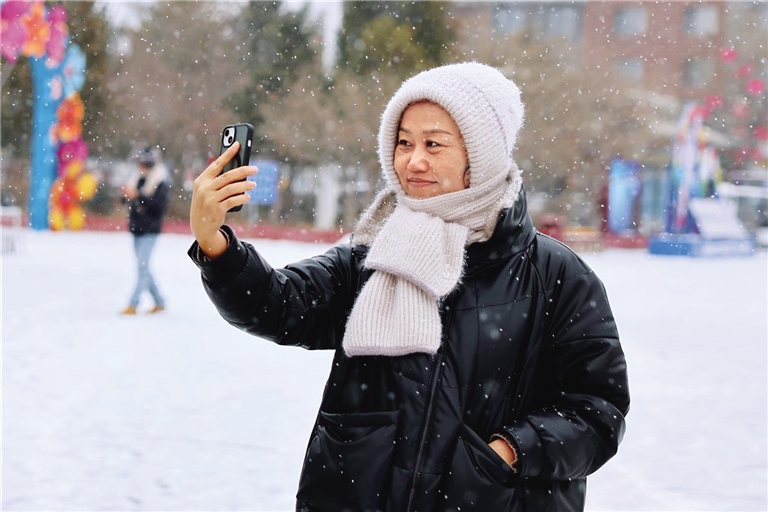 2月20日,呼和浩特龙年新雪悄至,绵绵白雪装点整个城市,粉妆玉砌,皓然一色,市民纷纷走出家门欣赏雪景。 (据草原全媒)
