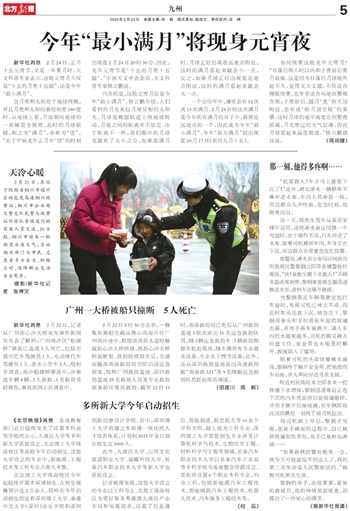 如何欣赏这轮龙年元宵月?“日落后两小时以内和子夜前后赏月最佳。这是因为日落后月球刚升起不久,显得又大又圆,不仅适合裸眼欣赏,也非常适合与地面景观合照;子夜前后,圆月‘走’到天顶附近,会形成‘皓月顶空照’的美景。这时月球的地平高度达到整夜最高,月光穿过的大气层薄,因此月球看起来晶莹剔透。”修立鹏建议说。(周润健)