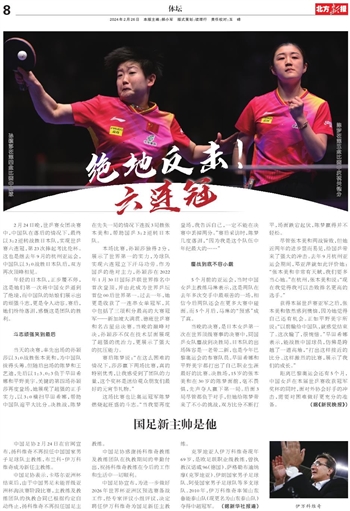 距离巴黎奥运会还有5个月,中国女乒在本届世乒赛收获冠军奖杯的同时,面对外协会好手的冲击,需要对困难做好更充分的准备。(据《新民晚报》)