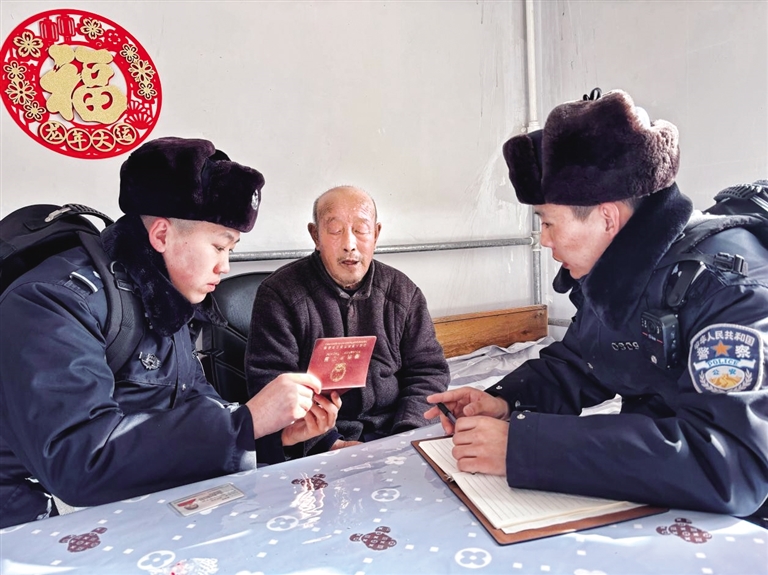 2月21日,苏尼特左旗公安局巴彦淖尔派出所民警格日勒陶格陶,来到辖区居民仰某家,从警务背包里掏出一本崭新的户口本,交到老人手中,老人手捧着户口本连声道谢。86岁的仰大爷儿女在外地务工,因腿脚不便,他很少外出。一次入户走访时,格日勒陶格陶了解到,老人的户口簿被老鼠咬坏,想换一本新的。两天后,格日勒陶格陶就办好了新户口本,送到仰大爷家中。