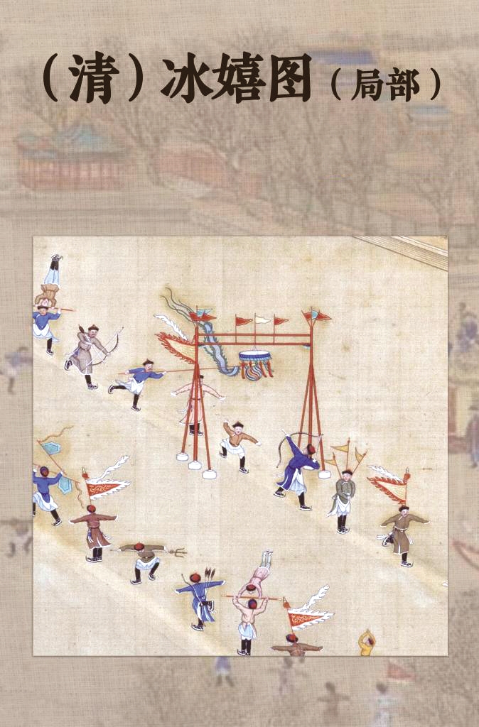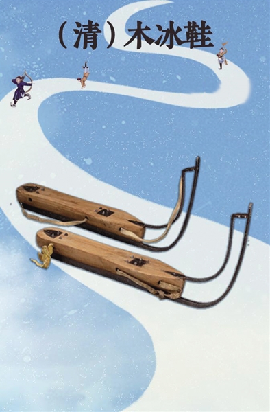 这是藏于故宫博物院的清代木冰鞋(如图1),木板下方嵌有铁条,使冰上滑行的选手“步逾疾焉”。“冰嬉”也是多种现代冰上运动的雏形,如速滑、花样滑冰和冰球等。