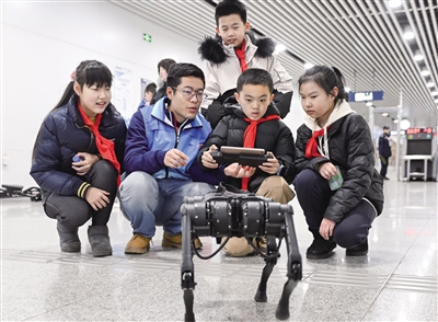 3月2日,内蒙古科技馆工作人员正在教小朋友操控机器人。当日,内蒙古科技馆开展“传承雷锋精神 科技志愿在行动”活动,通过形式多样的科技志愿服务,提升全民科学素质,助力文明城市创建。摄影/草原全媒·北方新报首席记者 牛天甲