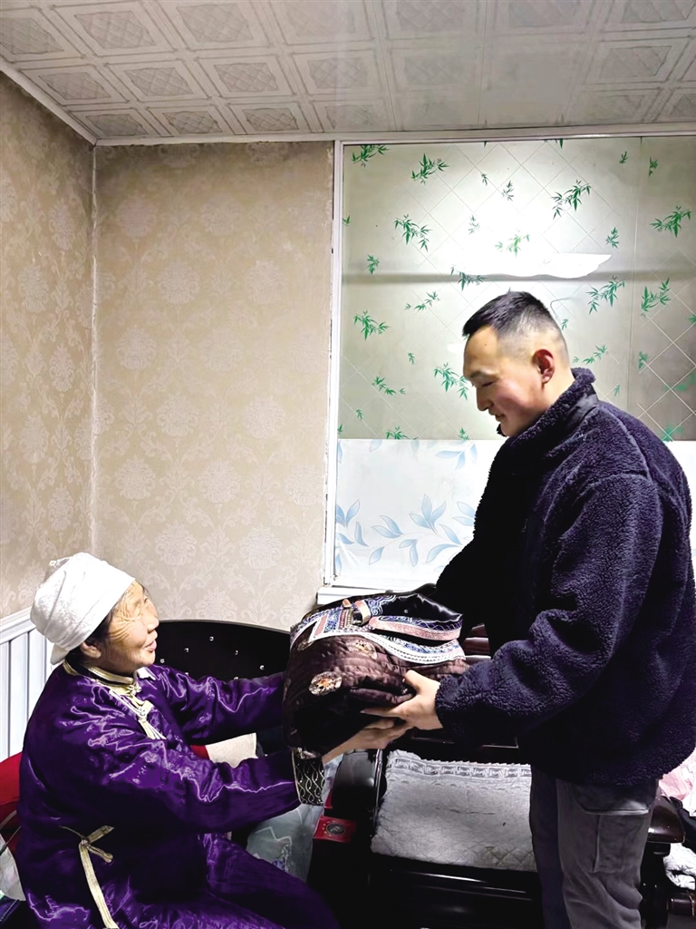 3月5日,记者联系到视频的拍摄者——退伍小伙的姐姐乌勒。她告诉记者,弟弟胡斯勒当兵走了两年,77岁的奶奶怕自己身体出现变故,等不到孙子回来。所以,当3月1日得知孙子要退伍从山东回来非常高兴,连续几天都没好好休息,一针一线亲手为胡斯勒缝制蒙古袍。“那天从机场接弟弟回到牧区的时候已经是3月3日2点多了,弟弟也非常牵挂奶奶,一路都在询问奶奶的身体状况,所以一进门,弟弟就直奔奶奶的房间。当奶奶看到弟弟那一刻,就忍不住落泪了,大家也都为之动容。特别是弟弟穿上奶奶亲手缝制的蒙古袍时,不只是弟弟,奶奶也看着精神多了。”乌勒接受记者采访时说。