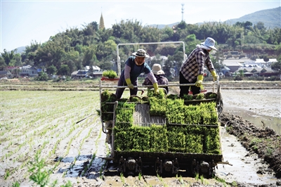 3月6日,云南省西双版纳州勐海县勐遮镇曼恩村的农民驾驶插秧机进行插秧作业。时下正值春耕备耕时节,各地抢抓农时,积极开展早稻育秧、农田翻耕、农机检修等工作,为春耕生产打下基础。(据新华社报道)