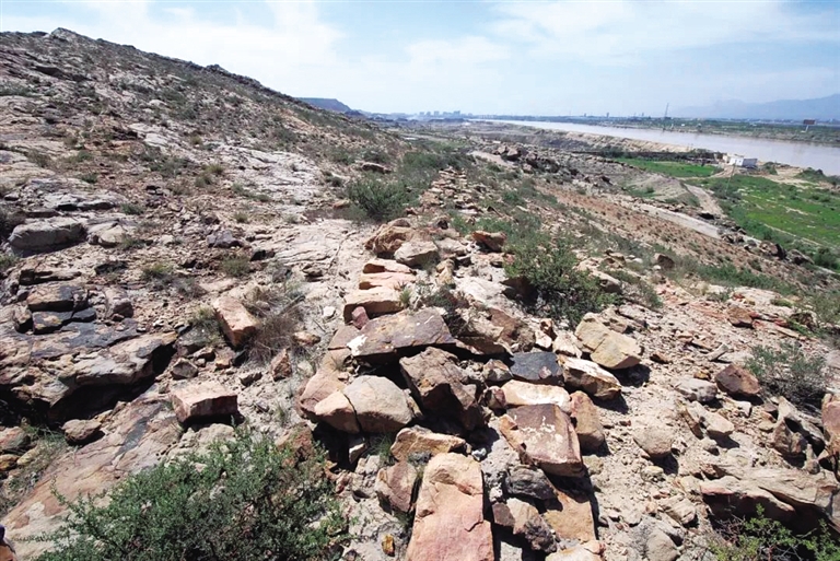 明嘉靖十五年(1536年),陕西三边总制刘天和想要恢复黄河以西、贺兰山以东、平虏城北至镇远关间的70里疆域,便在黄河东岸修堤一道,顺河直抵横城大边墙。这道长堤主要分布在宁夏原陶乐县境内,后世称为“陶乐长堤”。从刘天和修堤的初衷,结合实地勘察来看,“陶乐长堤”是在“沿河边墙”的基础上修筑而成的。这段长城有一部分自宁夏过都思兔河,进入乌海,构成今天所见乌海明长城主体。