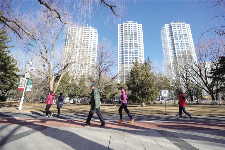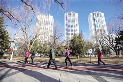 3月19日,呼和浩特天空湛蓝如洗,在公园绿地中市民们慢跑健身,与城市景观交相辉映,令人心旷神怡。2023年,呼和浩特全年优良天数合计292天,优良天数比率83.5%。摄影/草原全媒·北方新报首席记者 牛天甲