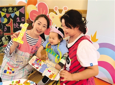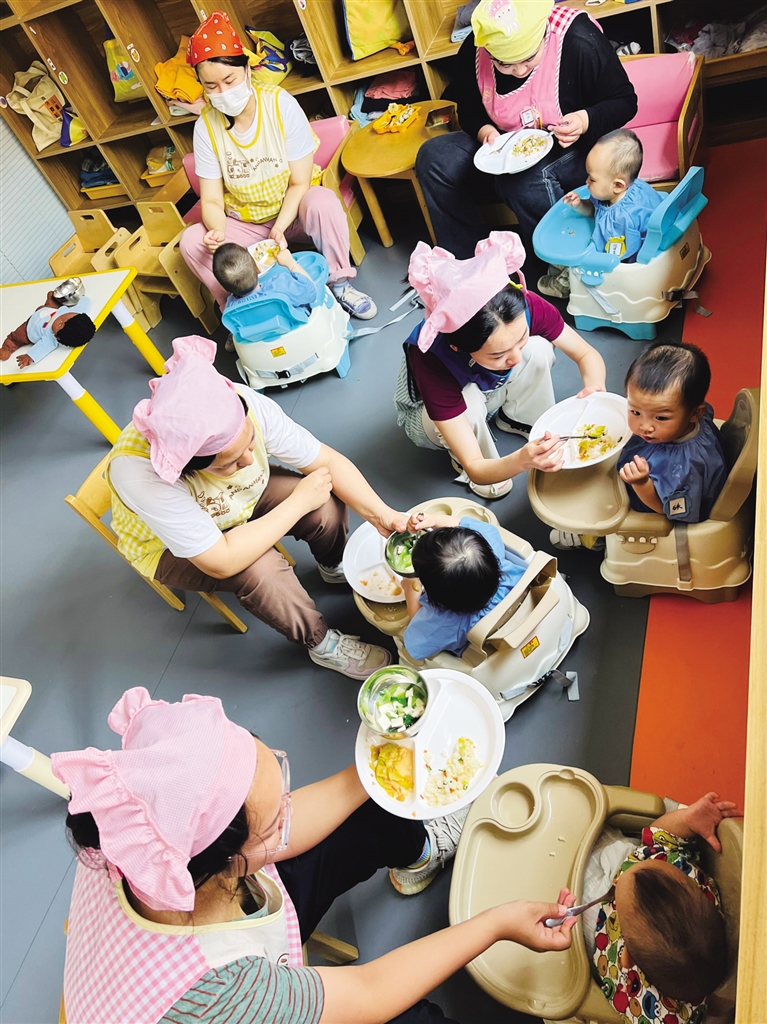 “来这里至少提前3个月预定托位。”一位工作人员告诉记者,目前,托育服务根据月龄开设托小班、混龄班、托大班,为幼儿提供生活照料、安全看护、平衡膳食、习惯养成和早期发展服务。园里共配备16名老师和5名后勤工作人员,老师都取得了相应资格,有高级婴幼儿早期教育指导师、心理咨询师、育婴师和营养师等。