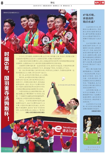 国羽上一次夺得汤姆斯杯冠军还要追溯到2018年。2021年决赛和2022年1/4决赛,中国队两次被印尼队淘汰。此次时隔6年再度捧杯,国羽在“复仇”印尼队的同时,也为巴黎奥运会之旅注入了更多信心。(据《人民日报》《光明日报》)