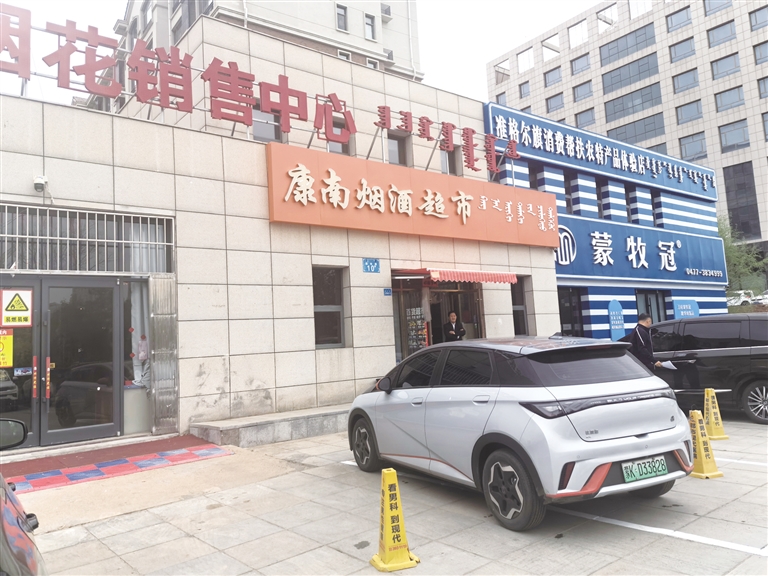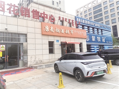 4月26日,记者在康和南岸小区东门看到,本该是公共设施和物业用房的42、43号楼,摇身一变成了商业用房。其中一栋变成一个汽贸公司,另一栋则变成了烟酒超市和商品体验店(如图)。