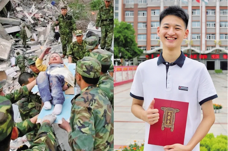 那一年,12岁的程强举起了“长大我当空降兵”的标语。地震发生后,程强所在的村子变成了一片废墟,他和家人陷入恐慌和无助。