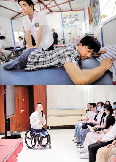 图4:上图为2011年4月25日,为备战伦敦残奥会加紧训练的代国宏。下图为2023年5月,作为四川残疾人励志报告团成员的代国宏走进北京大学,与学生交流。